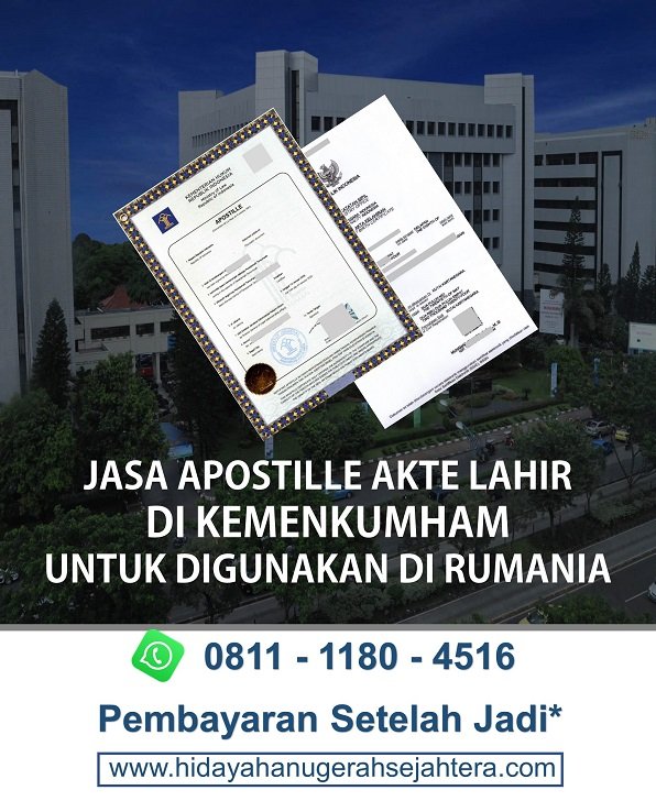 CV. Hidayah Anugerah Sejahtera adalah Perusahaan Jasa Apostille Akte Lahir di Kemenkumham / Kementerian Hukum dan HAM. Untuk dibawa ke Rumania sebagai syarat mengurus visa, ijin tinggal atau ingin menikah di Rumania
