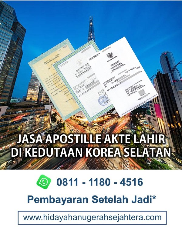 CV. Hidayah Anugerah Sejahtera adalah Perusahaan Jasa Apostille Akte Lahir di Kemenkumham / Kementerian Hukum dan HAM. Untuk dibawa ke Korea Selatan sebagai syarat untuk mengurus visa, sekolah atau ingin bekerja di Korea Selatan